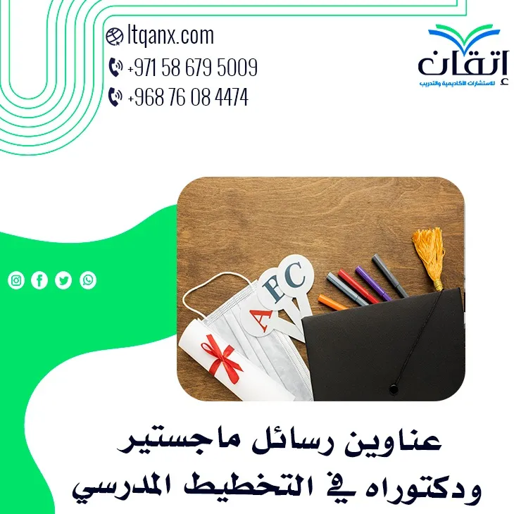 وفي الختام يبقى التخطيط المدرسي حجر الأساس في بناء منظومة تعليمية ناجحة قادرة على مواجهة التحديات وتحقيق التميز، وهو ما يجعل اختيار موضوع بحثي مناسب من بين عناوين رسائل ماجستير ودكتوراه في التخطيط المدرسي خطوة فارقة في مسيرتك الأكاديمية، وإذا كنت تبحث عن دعم احترافي، فإن شركة إتقان للاستشارات الأكاديمية والتدريب توفر لك خدمات متكاملة تشمل إعداد وصياغة الرسائل العلمية، واقتراح أحدث العناوين المبتكرة، ومساعدتك في جميع مراحل البحث حتى الوصول إلى أعلى مستويات الجودة، ومع إتقان تضمن لنفسك التميز والنجاح، ويمكنك التواصل معنا عبر الواتساب لتبدأ رحلتك بثقة نحو التفوق الأكاديمي.