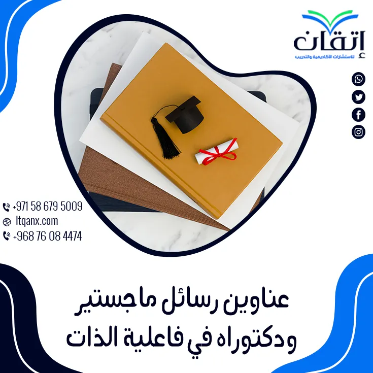 وفي ضوء ما سبق يتضح أن فاعلية الذات ليست مجرد مفهوم نفسي بل هي طاقة دافعة تمكّن الإنسان من التطور والتغلب على التحديات؛ ولذلك، فإن دراسة هذا المجال تمثل خطوة رائدة نحو تعزيز الأداء الأكاديمي والمهني على حد سواء، وتوفر شركة إتقان للاستشارات الأكاديمية والتدريب مجموعة ثرية من عناوين رسائل ماجستير ودكتوراه في فاعلية الذات مصممة لتلبية احتياجات الباحثين الطموحين، ومع فريقها المتميز تحصل على الدعم الكامل في صياغة موضوعك وتحويل فكرتك إلى إنجاز بحثي متكامل؛ ولذلك لا تتردد في دخول بوابة التميز الأكاديمية عبر التواصل معنا على الواتساب بكل سهولة؛ لكي تبدأ رحلتك الأكاديمية نحو التميز والإبداع بثقة ونجاح.