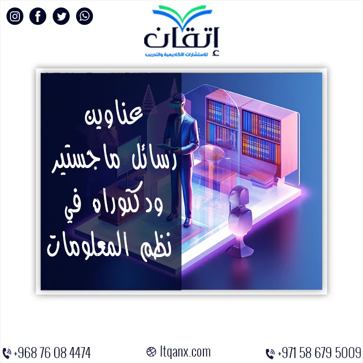 وفي النهاية يتضح أن نظم المعلومات ليست مجرد مجال دراسي بل هي لغة العصر التي تمنح المؤسسات والباحثين القدرة على الإبداع والتفوق، وإذا كنت تطمح إلى صياغة بحث يترك بصمة في هذا المجال، فإن شركة إتقان للاستشارات الأكاديمية والتدريب تضع بين يديك مجموعة حصرية من عناوين رسائل ماجستير ودكتوراه في نظم المعلومات، مصممة بعناية لتواكب متطلبات المستقبل، نحن لا نقدم عناوين فقط بل نمنحك طريقًا ممهدًا نحو التميز بدعم فريق متخصص يقف بجانبك خطوة بخطوة؛ لذلك لا تتردد في دخول بوابة التميز الأكاديمية عبر خدمات إتقان الرائدة، تواصل معنا الآن عبر الواتساب بسهولة، وابدأ رحلتك البحثية بثقة لتكتب قصتك الخاصة في عالم الإبداع والابتكار.