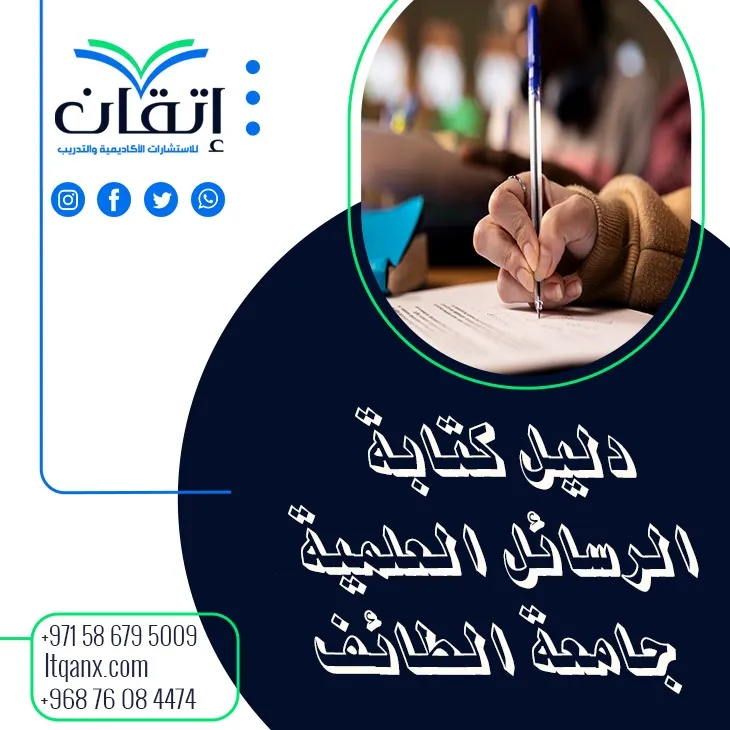 يُمكن لشركة إتقان أن تكون شريكك الموثوق في إعداد رسائل الماجستير والدكتوراه بجامعة الطائف؛ حيث إنها نمتلك خبراء متخصصين في إعداد الرسائل العلمية وفق أعلى المعايير الأكاديمية، يمكنك التواصل معنا عبر الواتساب.