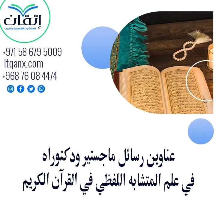 وفي النهاية بعد عرض أبرز عناوين رسائل الماجستير والدكتوراه في علم المتشابه اللفظي في القرآن الكريم، نسأل الله العلى العظيم بالتوفيق لجميع الباحثين، وإذا أردت في أي وقت معرفة عناوين لرسالتك العلمية، كل ما عليك هو الاعتماد على شركة "إتقان" للاستشارات الأكاديمية والتدريب، يوجد لدينا نخبة من المتخصصين في هذا المجال، يمكنك التواصل معنا عبر الواتساب.