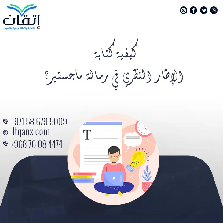 في النهاية، يتضح أن فهم كيفية كتابة الإطار النظري في رسالة ماجستير يمثل خطوة أساسية لنجاح أي بحث علمي، فهو يعكس قوة الباحث ومنهجيته الأكاديمية، وإن الالتزام بالخطوات والشروط وتجنب الأخطاء يضمن إعداد إطار نظري متكامل يرفع من جودة الرسالة، وإذا كنت تحتاج إلى دعم أكاديمي متخصص، تواصل مع إتقان للاستشارات الأكاديمية والتدريب لتجد الحلول التي تقودك نحو التميز والنجاح، يمكنك التواصل معنا عبر الواتساب