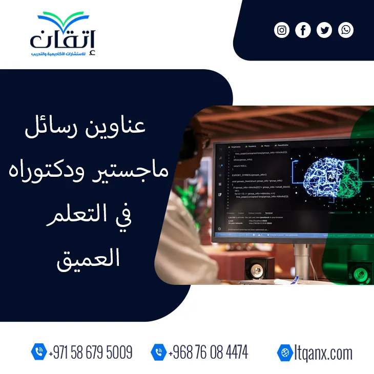 في عالم يتغير بسرعة الضوء يبرز التعلم العميق كقوة خفية تعيد تشكيل مستقبل التكنولوجيا وتفتح آفاقًا لم يكن الباحثون يحلمون بها من قبل، ومع تزايد الطلب على عناوين رسائل ماجستير ودكتوراه في التعلم العميق برزت شركة إتقان للاستشارات الأكاديمية والتدريب كعلامة فارقة تجمع بين الجودة والابتكار بفضل فريقها المتخصص، وتدرك إتقان أن الباحث اليوم لا يبحث فقط عن معلومة بل عن إلهام يقوده للتميز؛ لذلك قدمت باقة حصرية من أحدث العناوين البحثية التي ترتقي بطموحات الدارسين وتمنحهم دفعة قوية نحو الإبداع، إنها دعوة لدخول عالم يأخذك فيه العلم إلى مستوى جديد من التأثير والمعرفة.