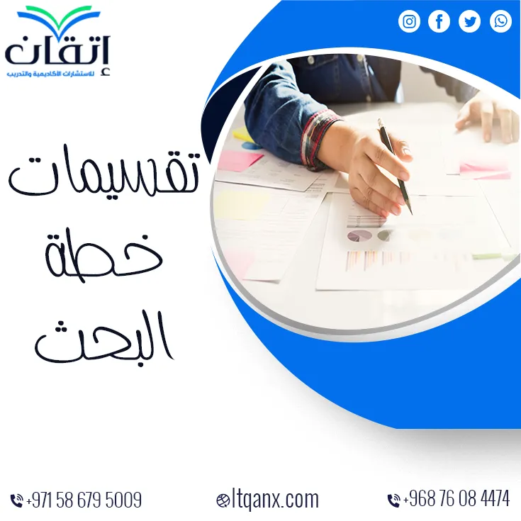 إذا كنت تبحث عن الحصول على خطة بحثية متكاملة تعكس احتياجاتك الأكاديمية، يمكنك الاستفادة من خدمات إتقان هذه المنصة تقدم خدمات متخصصة تهدف لمساعدتك في إعداد خطة بحث شاملة ومناسبة لطبيعة موضوعك، تواصل معهم للحصول على الدعم والمشورة اللازمة، وسيساهم ذلك في تحسين جودة عملك الأكاديمي.