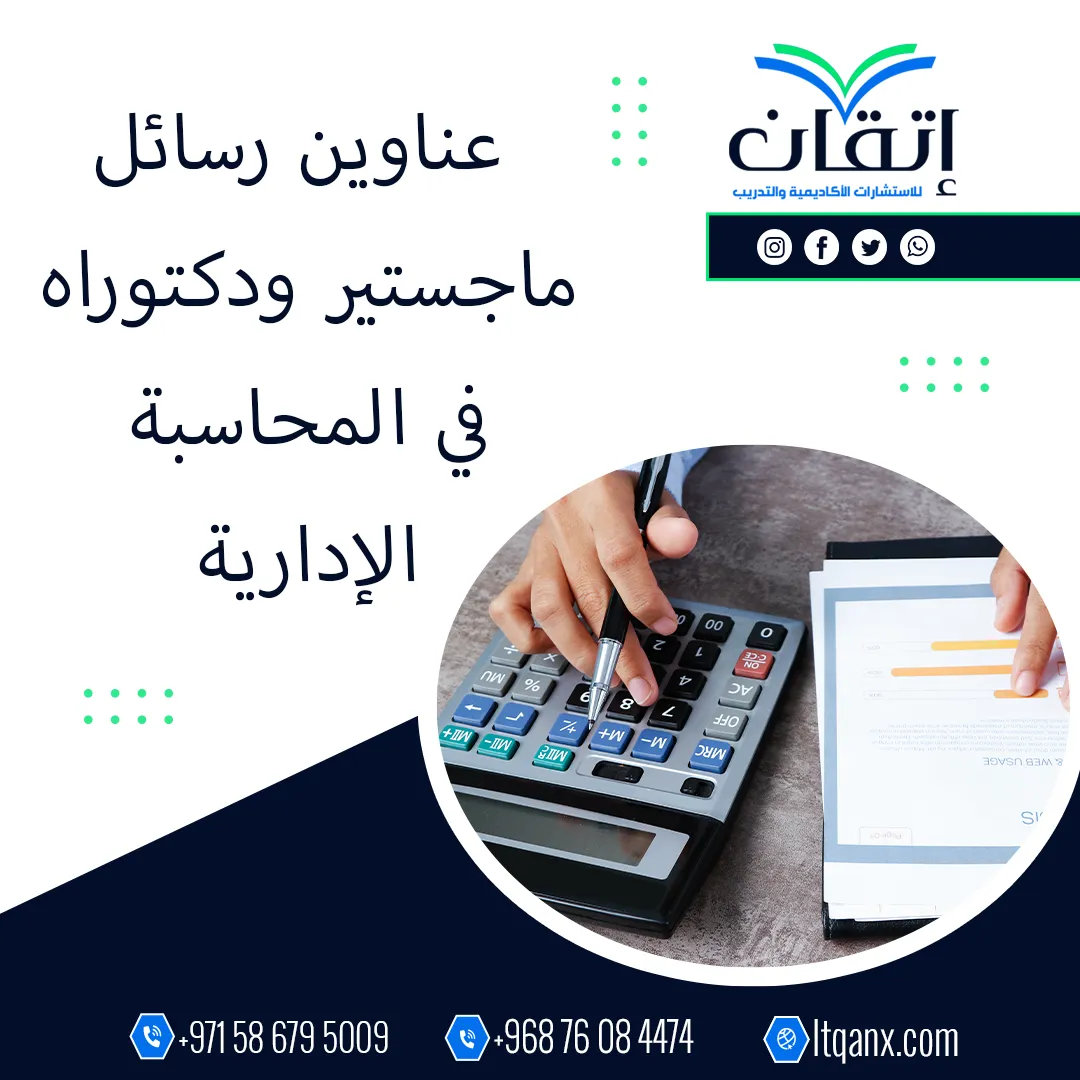 في عالم تتسارع فيه الأرقام وتتشابك فيه القرارات تبرز المحاسبة الإدارية كأحد أهم أدوات الإدارة الحديثة في توجيه المؤسسات نحو تحقيق الكفاءة والريادة، ومع اتساع اهتمام الباحثين بهذا المجال أصبحت عناوين رسائل ماجستير ودكتوراه في المحاسبة الإدارية محورًا جوهريًا للبحث والتحليل، وإدراكًا من شركة إتقان للاستشارات الأكاديمية والتدريب لأهمية هذا التخصص، فقد برزت بجودة أعمالها وكفاءة فريقها المتميز واسع الخبرة؛ لذلك قدمت الشركة باقة ثرية من أحدث وأهم العناوين البحثية لدعم الباحثين وتمكينهم من اختيار موضوعات رصينة وابتكارية.