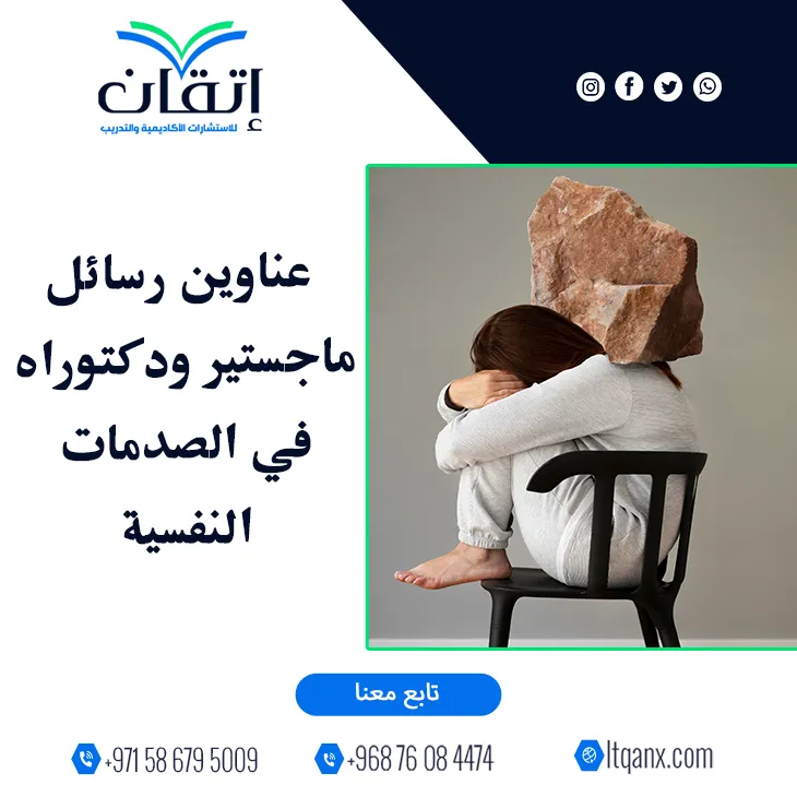 ليست الصدمات النفسية مجرد أحداث عابرة في الذاكرة بل تجارب عميقة تترك آثارها في البناء النفسي والسلوكي للإنسان عبر الزمن، ومع تنامي الوعي العلمي بخطورة هذا المجال يتجه الباحثون إلى استكشاف عناوين رسائل ماجستير ودكتوراه في الصدمات النفسية التي تكشف أبعادها وتشخص آثارها بدقة منهجية، ومن هذا المنطلق تتألق شركة إتقان للاستشارات الأكاديمية والتدريب بجودتها وكفاءتها الإبداعية، مستندةً إلى فريق عمل مميز وذو خبرة متخصصة، وإدراكًا لأهمية هذا الموضوع لدى الباحثين قدمت إتقان باقة منتقاة من أحدث وأهم العناوين البحثية دعمًا لمسيرتهم العلمية.