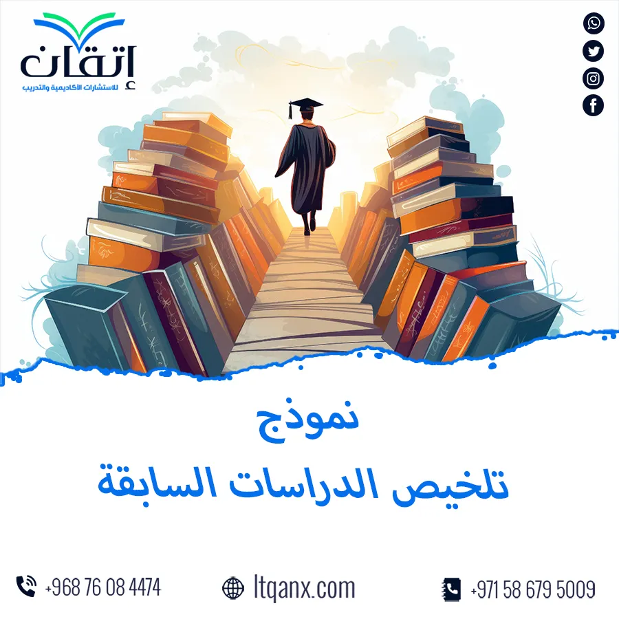 في الحتام تتضح أهمية الدعم الأكاديمي الاحترافي الذي تقدمه شركة إتقان لجميع الباحثين والطلاب، فإتقان يضمن الوصول إلى أعلى مستويات الجودة في إعداد البحوث والدراسات العلمية بمساعدة فريق من الخبراء وأحدث الأدوات البحثية، وتُساعد الشركة الباحثين على صياغة خطط بحثية متكاملة واستخدام نموذج تلخيص الدراسات السابقة بدقة وبناء إطار نظري متين اختر إتقان لتجربة بحثية متميزة ترتقي ببحثك العلمي إلى آفاق الاحترافية والتميز، فلا تتردد في التواصل معنا على الواتساب الآن.