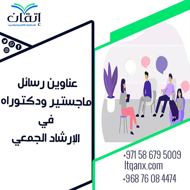 في ختام الحديث، يظل الإرشاد الجمعي وسيلة فعّالة لتعزيز الدعم النفسي والاجتماعي بين الأفراد، وتطوير مهارات التفاعل الجماعي وحل المشكلات بشكل مشترك، وتشكل عناوين رسائل ماجستير ودكتوراه في الإرشاد الجمعي مرجعًا غنيًا للباحثين لاستكشاف أفضل الاستراتيجيات والتقنيات العملية لتطبيق الإرشاد داخل المجموعات، شركة إتقان شريك النجاح والتميز الأكاديمي، حيث تقدم دعماً متكاملاً للطلاب والباحثين، يمكنكم التواصل بكل سهولة عبر تطبيق الواتساب للحصول على استشارات ودعم أكاديمي مباشر، اجعلوا الإرشاد الجمعي أداة حقيقية لبناء فرق متماسكة ومجتمعات داعمة وناجحة.
