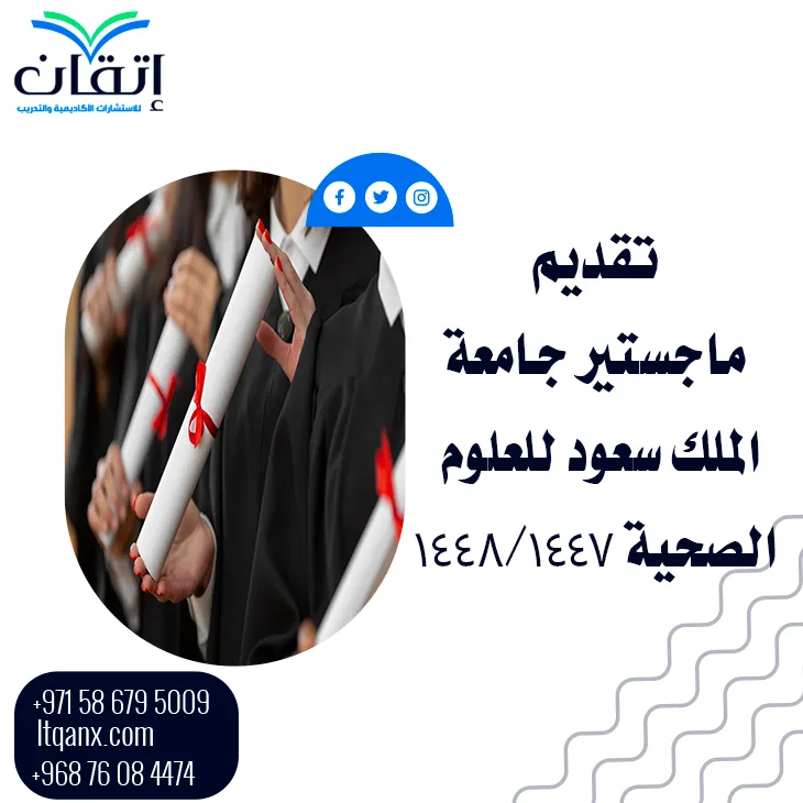 مع شركة إتقان للاستشارات الأكاديمية والتدريب أنت لا تحصل فقط على خدمة، بل على شريك استراتيجي حقيقي في رحلتك الأكاديمية والمهنية، منذ تأسيسنا، وضعنا الباحث والطالب في قلب أولوياتنا، فنعمل على تقديم استشارات متكاملة تشمل إعداد رسائل الماجستير والدكتوراه، إلى جانب الدعم الكامل في تقديم ماجستير جامعة الملك سعود للعلوم الصحية 1447-1448هـ وغيرها من برامج الدراسات العليا، فريقنا المتمرس يضمن لك جودة عالية، التزامًا صارمًا بالمواعيد، وسرية تامة في تنفيذ العمل، فبل تتردد في التواصل معنا على الواتساب الآن.