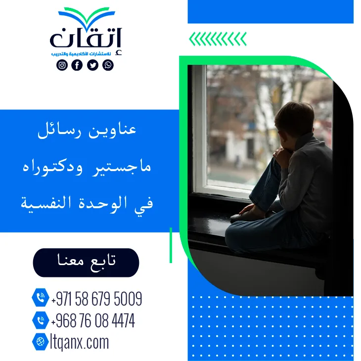 تعد الوحدة النفسية تجربة جوهرية تؤثر على الصحة النفسية وجودة الحياة، وتعكس حاجة الإنسان للانتماء والتواصل العاطفي والاجتماعي، وإدراكًا لأهمية هذا الموضوع البحثي تتميز شركة إتقان للاستشارات الأكاديمية والتدريب بالجودة والكفاءة الإبداعية بفضل فريقها المميز وذو الخبرة، ومن هذا المنطلق تقدم الشركة باقة منتقاة تضم عناوين رسائل ماجستير ودكتوراه في الوحدة النفسية صيغت بعناية لدعم الباحثين ومواكبة أحدث الدراسات العلمية.
