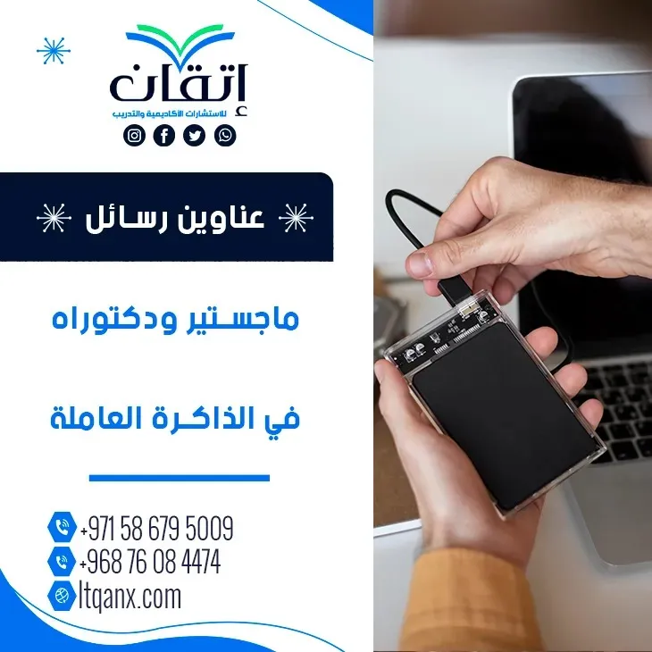 في قلب العمليات المعرفية المعقدة تتصدر الذاكرة العاملة مشهد التفكير والانتباه واتخاذ القرار، باعتبارها المحرك الخفي الذي ينظم تدفق المعلومات ويمنح العقل قدرته على المعالجة الفورية بذكاء وكفاءة، وإدراكًا لأهمية هذا المجال المتنامية في البحث العلمي تضع شركة إتقان للاستشارات الأكاديمية والتدريب هذا الموضوع ضمن أولوياتها، اعتمادًا على جودة خدماتها وكفاءة فريقها الخبير، ومن هذا المنطلق تقدم إتقان باقة متخصصة تضم عناوين رسائل ماجستير ودكتوراه في الذاكرة العاملة لمساندة الباحثين بأحدث الاتجاهات البحثية ودعم مسيرتهم الأكاديمية باحتراف.