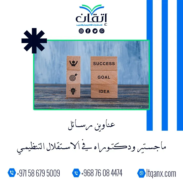 يُمثل الاستقلال التنظيمي عنصراً جوهرياً لتمكين المؤسسات من اتخاذ قرارات فعالة وتحقيق المرونة في إدارة الموارد والعمليات، ومع الاهتمام المتزايد بالبحث العلمي في هذا المجال تتصدر عناوين رسائل ماجستير ودكتوراه في الاستقلال التنظيمي قائمة الموضوعات التي تمنح الباحثين رؤى علمية متقدمة لتطوير الهياكل التنظيمية، ومن منطلق تميزها بالكفاءة الإبداعية والجودة العالية تقدم شركة إتقان للاستشارات الأكاديمية والتدريب بفريقها الخبير والمتميز باقة من أحدث وأهم العناوين البحثية لدعم الباحثين.