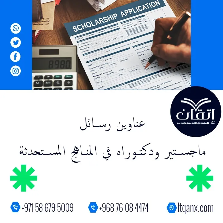 وفي الختام تؤكد شركة إتقان للاستشارات الأكاديمية والتدريب أنها شريك النجاح والتميز الأكاديمي لكل من يسعى إلى التميز في عناوين رسائل ماجستير ودكتوراه في المناهج المستحدثة، ويسرنا دعوتكم للتواصل عبر تطبيق واتساب بكل سهولة للحصول على دعم أكاديمي متخصص يواكب طموحاتكم البحثية.