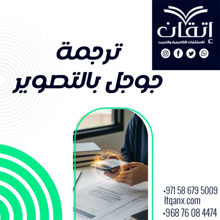 اختر شركة إتقان للاستشارات الأكاديمية والتدريب؛ لتكون شريكك المثالي في رحلتك الأكاديمية والبحثية، وبفضل دمج الخبرة الأكاديمية المتخصصة مع أحدث التقنيات في الترجمة، بما في ذلك ترجمة جوجل بالتصوير، نضمن لك جودة عالية، ودقة لغوية، وأساليب متقدمة تلبي جميع احتياجاتك البحثية؛ معنا ستحصل على ترجمة احترافية، وإشراف أكاديمي متكامل، ودعم متواصل يعزز نجاحك، ويقودك لتحقيق أهدافك البحثية بثقة واحترافية لا مثيل لها، فلا تترد في التواصل على الواتساب الآن.
