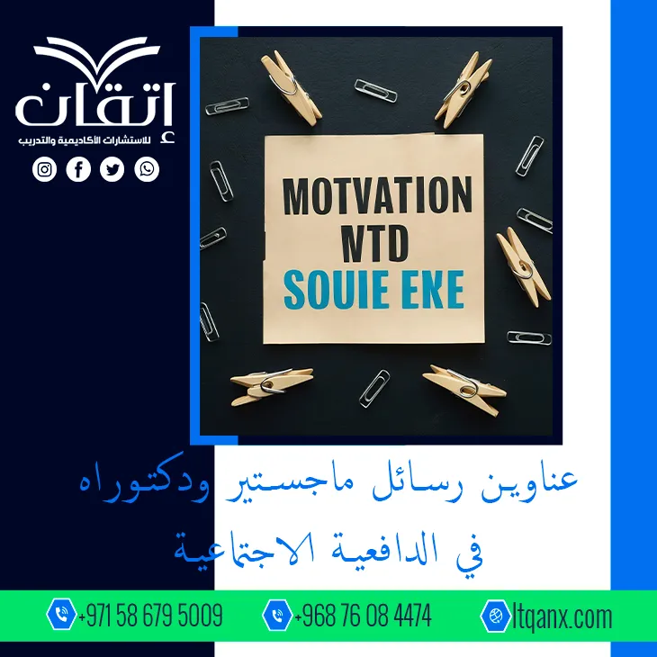 حين لا تقاس حركة الإنسان بخطواته بل بدوافعه الخفية تتجلى الدافعية الاجتماعية كقوة صامتة تعيد تشكيل السلوك وتمنحه اتجاهًا ومعنى؛ حيث إنها البوصلة التي توجه التفاعل الإنساني وتحفز الأفراد نحو الانتماء والتأثير، ومن هذا المنطلق تبرز أهمية عناوين رسائل ماجستير ودكتوراه في الدافعية الاجتماعية كنافذة علمية تكشف عمق هذا المفهوم وتطبيقاته المعاصرة؛ لذلك حرصت شركة إتقان للاستشارات الأكاديمية والتدريب على تقديم باقة متميزة من أحدث وأهم العناوين البحثية، مستندةً إلى جودة عالية وكفاءة إبداعية وفريق عمل خبير يدرك احتياجات الباحثين بدقة.