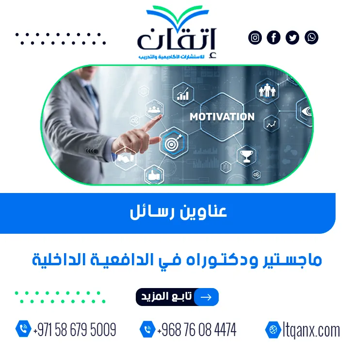 حين ينبع الدافع من الداخل ويقود السلوك نحو الإنجاز والتميز تتجلى أهمية الدافعية الداخلية كقوة محركة للفرد في التعلم والعمل؛ مما يجعل دراستها أمرًا حيويًا؛ من خلال عناوين رسائل ماجستير ودكتوراه في الدافعية الداخلية التي تبحث في أبعادها النفسية والسلوكية، وانطلاقًا من هذا الوعي تبرز شركة إتقان للاستشارات الأكاديمية والتدريب بجودة خدماتها وكفاءتها الإبداعية، مستفيدةً من خبرات فريق عمل متميز، وقدمت باقة من أحدث وأهم العناوين البحثية لدعم الباحثين وتمكينهم من إنتاج دراسات علمية رصينة.