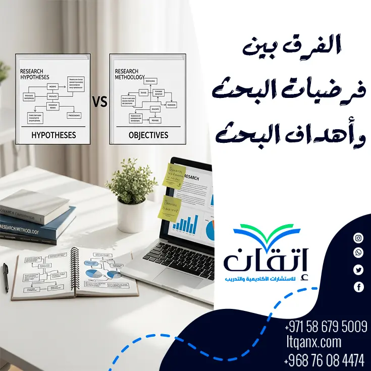 في شركة إتقان للاستشارات الأكاديمية والتدريب نقدم لك شريك حقيقي في رحلتك العلمية؛ حيث نحرص على توفير استشارات أكاديمية متكاملة تُمكنك من تحقيق طموحاتك البحثية، تقدم إتقان خدمات البحث العملي والدورات التدريبية في الدول العربية، مثل: المملكة العربية السعودية، وقطر، والكويت، والإمارات، وغيرها، كما نؤكد على أن فهم الفرق بين فرضيات البحث وأهداف البحث يساعد الباحث على صياغة دراسات دقيقة ومنهجية، ويمكن التواصل معنا بسهولة عبر الواتساب لأي استفسار أو طلب خدمة في أي وقت.