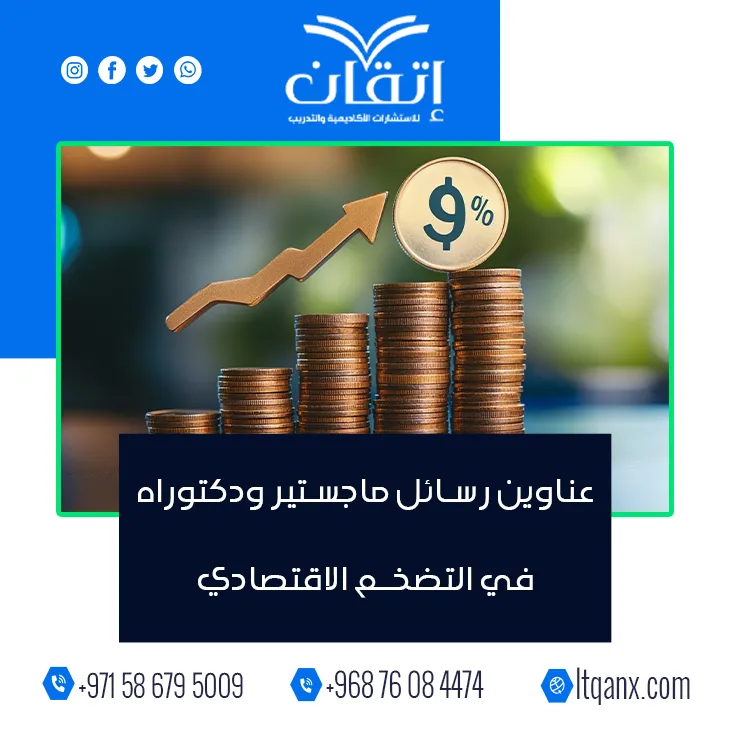 تبدأ رحلة فهم الاقتصاد حين ترتفع الأسعار بصمت، فيظهر التضخم الاقتصادي كظاهرة تعيد تشكيل قرارات الأفراد والدول، ومن هنا تبرز أهمية عناوين رسائل ماجستير ودكتوراه في التضخم الاقتصادي بوصفها بوابة بحثية لفهم أعمق وتحليل أكثر احترافية، وانطلاقًا من وعيها بقيمة هذا المجال لدى الباحثين، تقدم شركة إتقان للاستشارات الأكاديمية والتدريب قائمة حديثة ومبتكرة من العناوين البحثية، معتمدة على فريق عمل خبير يجمع بين الجودة والكفاءة والإبداع لدعم المسيرة العلمية.