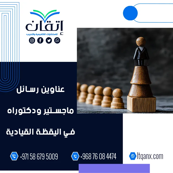 في عالمٍ تتسارع فيه التحديات وتتغير بيئات العمل بسرعة تبرز اليقظة القيادية كالبوصلة التي تمكن القائد من قراءة الفرص والمخاطر واتخاذ القرارات الحاسمة في الوقت المناسب، ومن هنا يزداد اهتمام الباحثين بالاطلاع على عناوين رسائل ماجستير ودكتوراه في اليقظة القيادية التي توفر رؤى عميقة لفهم هذا المفهوم الحيوي، وإدراكًا لأهمية هذا المجال قدمت شركة إتقان للاستشارات الأكاديمية والتدريب باقة مختارة من أحدث العناوين البحثية، مستندةً إلى فريق عمل مميز يجمع بين الخبرة والجودة والإبداع الأكاديمي.