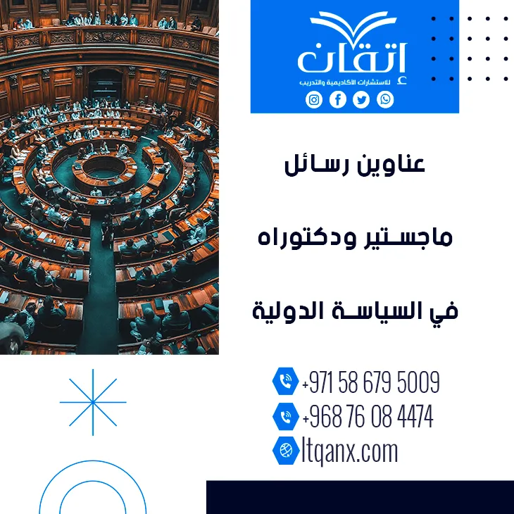 ليست السياسة الدولية مجرد تفاعلات بين الدول بل شبكة معقدة من المصالح والاستراتيجيات التي تعيد تشكيل موازين القوة في العالم باستمرار، وفي ظل هذه التحولات المتسارعة يتجه الباحثون إلى استكشاف هذا الحقل عبر البحث عن عناوين رسائل ماجستير ودكتوراه في السياسة الدولية التي تكشف أبعاده المعرفية والتحليلية، ومن هذا المنطلق تدرك شركة إتقان للاستشارات الأكاديمية والتدريب أهمية هذا المجال لدى الباحثين؛ حيث تتميز بالجودة والكفاءة الإبداعية بفضل فريق عمل متخصص وذو خبرة؛ لذلك قدمت قائمة تضم أحدث وأهم عناوين الرسائل في السياسة الدولية دعمًا للباحثين في اختيار موضوعات بحثية معاصرة ومتميزة.