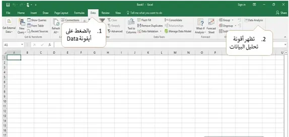 أولًا: النقر على Dataبعدها يظهر أيقونة Data Analysis.