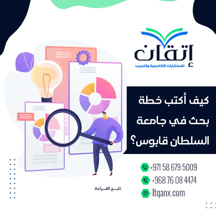 مع شركة إتقان للاستشارات الأكاديمية والتدريب يصبح إعداد البحث الأكاديمي رحلة سلسة واحترافية، وبمجرد أن تتعرف على كيف أكتب خطة بحث في جامعة السلطان قابوس؟ يسهل عليك الاستفادة من دعمنا المتكامل الذي يجمع بين الخبرة العلمية والإرشاد العملي، تقدم إتقان خدمات الابحاث والرسائل العلمية في الدول العربية، مثل: المملكة العربية السعودية، الإمارات، الكويت، وقطر، لتساعد الباحثين على صياغة خطط بحثية متميزة، تطوير مهاراتهم الأكاديمية، ويمكنك التواصل معنا بسهولة عبر الواتساب للحصول على الاستشارات والدورات والدعم العلمي المباشر.