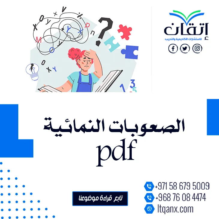 وفي الختام، تُعد الصعوبات النمائية pdfمن التحديات التي تواجه العديد من الأطفال وتؤثر بشكل عميق على حياتهم، ومع أن هذه الصعوبات قد تسفر عن مشاعر الإحباط والعزلة، إلا أن فهمها وتوفير الدعم الملائم يمكن أن يسهم في تغيير مسار حياة الأطفال نحو الأفضل، من الضروري أن يعمل الأهل والمعلمون معًا لتقديم استراتيجيات تعليمية مخصصة وبيئة مشجعة تتيح للأطفال التعبير عن أنفسهم وتحقيق إمكاناتهم الكاملة؛ من خلال التوعية والتفهم، نحن شركة إتقان للاستشارات الاكاديمية نساعدك على توفير المراجع اللازم في عدد من التخصصات المُختلفة، نقدم لك أهم مواقع نشر الأبحاث العلمية العربية والأجنبية، وكل ما عليك اغتنام الفرصة والتواصل معنا عبر الواتساب.