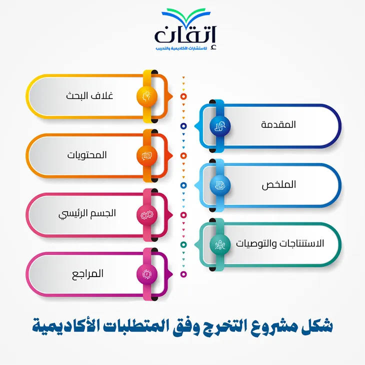 ✦ وفي النهاية يجب أن يتبع شكل مشروع التخرج المعايير الأكاديمية والتوجيهات الخاصة بالجامعة أو الكلية، ويجب أن يكون منظمًا ومنسقًا بشكل مهني، وعلمي، وأكاديمي، ويمكن الاستفادة من نماذج مشاريع تخرج سابقة.