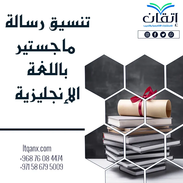 لذلك قامت شركة إتقان لخدمات البحث العلمي والترجمة المعتمدة بتخفيف العبء عن الباحثين من خلال تقديم خدمة تنسيق الرسائل العلمية وخاصة تنسيق رسالة ماجستير باللغة الإنجليزية وفقًا لدليل الجامعة، ويتم ذلك بواسطة فريق متميز من المتخصصين في مختلف المجالات العلمية؛ وبذلك نضمن للباحثين أن تخرج رسائلهم العلمية بتنسيق ممتاز وكفاءة عالية تتماشى مع معايير الجودة والاعتماد الأكاديمي، إذا كنت تريد التميز في رسالتك كل ما عليك هو التواصل معنا عبر الواتساب.