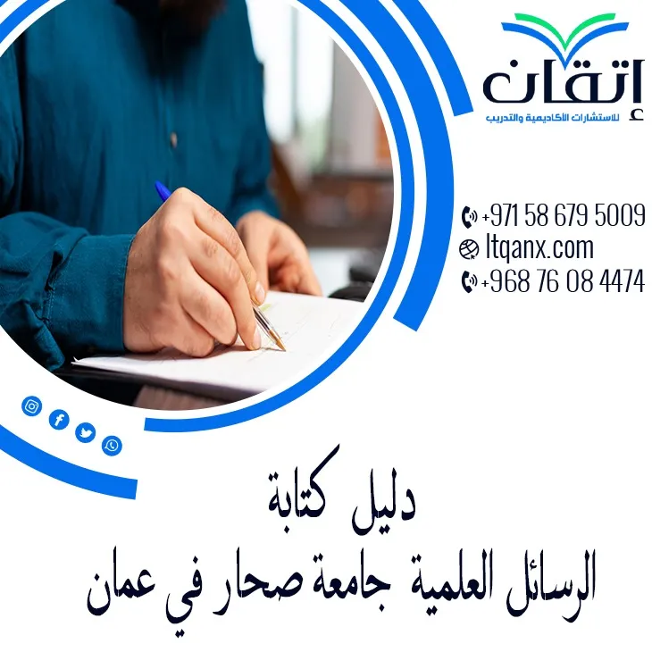 في شركة إتقان ستساندك في إعداد رسائل الماجستير والدكتوراه بجامعة صحار، معتمدين على خبراء متخصصين يمتلكون خبرة واسعة في إعداد الرسائل العلمية وفق أعلى المعايير الأكاديمية، كل ما عليك التواصل معنا عبر الواتساب.