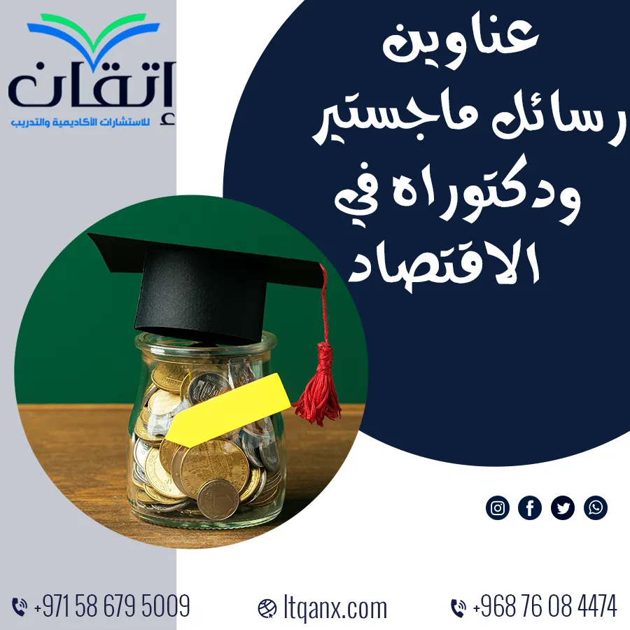 وفي ختام هذا المقال نؤكد أن اقتناء عناوين رسائل ماجستير ودكتوراه في الاقتصاد يُمثل الخطوة الأولى نحو إعداد بحث علمي قادر على معالجة قضايا اقتصادية معاصرة، وإيجاد حلول مبتكرة للتحديات العالمية، وإذا كنت تطمح إلى التميز الأكاديمي وإعداد رسالة قوية وفق أعلى المعايير، فإن شركة إتقان للاستشارات الأكاديمية تضع بين يديك خبراتها المتخصصة في اقتراح العناوين، وإعداد الخطط البحثية، وصياغة الرسائل بدقة واحترافية، واغتنم الفرصة الآن للتواصل معنا عبر الواتساب، ودعنا نرافقك في رحلتك نحو النجاح والتفوق العلمي.