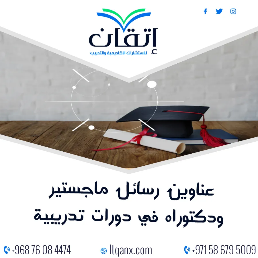 وفي ختام التحدث عن الدورات التدريبية نود أن نقول إن الدورات التدريبية ليست مجرد برامج بل هي محرك لتطوير الكفاءات وصقل المهارات على أعلى مستوى، إن اختيار العنوان الصحيح يجعل رسالتك البحثية مؤثرة وذات قيمة، وهذا ما تمنحه لك عناوين رسائل ماجستير ودكتوراه في دورات تدريبية، ومع شركة إتقان للاستشارات الأكاديمية والتدريب لن تكون رحلتك البحثية تقليدية بل مليئة بالابتكار والدعم العملي، من اقتراح العناوين إلى صياغة أفكار بحثية خلاقة تترك بصمة واضحة، تواصل معنا عبر الواتساب، واجعل بحثك خطوة حقيقية نحو التميز الأكاديمي.