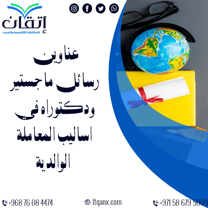 تُعد أساليب المعاملة الوالدية حجر الأساس في تشكيل شخصية الأبناء وبناء سلوكهم وانفعالاتهم؛ حيث إنها المرآة التي تنعكس فيها القيم والتنشئة السليمة للأسرة والمجتمع، ومن هنا يزداد الاهتمام الأكاديمي بهذا المجال لما له من دور عميق في تربية الأجيال وإعدادهم لمواجهة تحديات الحياة، وفي هذا الإطار يسر شركة إتقان للاستشارات الأكاديمية والتدريب أن تضع بين أيديكم قائمة مميزة من عناوين رسائل ماجستير ودكتوراه في أساليب المعاملة الوالدية جُمعت بعناية من أحدث الدراسات، وهذه العناوين تمنح الباحثين فرصًا ثرية لاختيار موضوعات حديثة وملهمة تثري مسيرتهم العلمية.