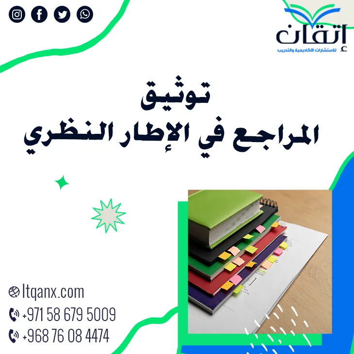 في الختام، يُعد توثيق المراجع في الإطار النظري خطوة أساسية لضمان جودة البحث ومصداقيته الأكاديمية، ومع دعم شركة إتقان للاستشارات الأكاديمية والتدريب يصبح التوثيق أكثر دقة واحترافية وفق المعايير العالمية، إذا كنت ترغب في تقديم بحث متكامل يبرز تميزك العلمي، تواصل مع فريق إتقان على الواتساب اليوم وابدأ بخطوة واثقة نحو النجاح.