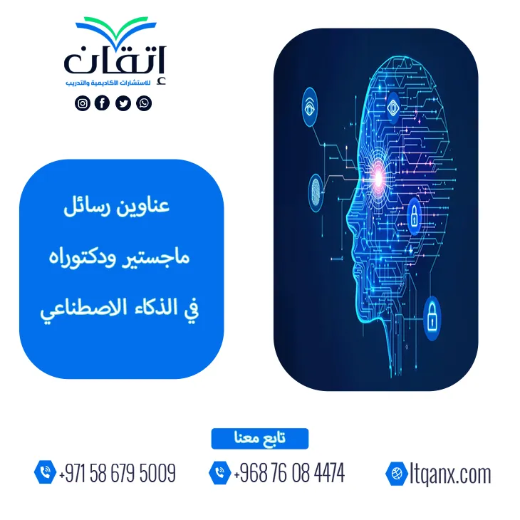 في عصرٍ تتسارع فيه التحولات الرقمية ويعاد فيه تعريف حدود الابتكار يومًا بعد يوم يبرز الذكاء الاصطناعي بوصفه القوة الدافعة لمستقبلٍ أكثر ذكاءً وإبداعًا، ومن هذا المنطلق تواصل شركة إتقان للاستشارات الأكاديمية والتدريب تأكيد ريادتها وتميزها في دعم الباحثين من خلال جودة خدماتها وكفاءتها الإبداعية التي يصنعها فريق محترف يمتلك خبرة علمية عميقة ورؤية تطويرية شاملة، وإيمانًا من إتقان بأهمية هذا المجال المتجدد لدى الدارسين أعدت بعناية باقة حصرية من أحدث وأهم عناوين رسائل ماجستير ودكتوراه في الذكاء الاصطناعي؛ لكي تكون مصدر إلهامٍ أكاديمي ودليلًا علميًا يعين الباحثين على اختيار موضوعات بحثية أصيلة تواكب متطلبات المستقبل وتفتح آفاق الابتكار المعرفي.
