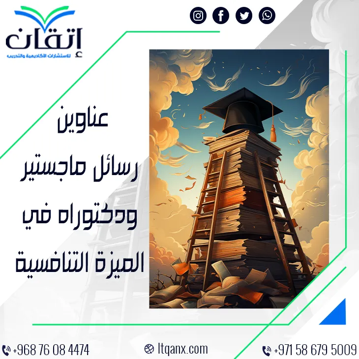 في الختام، إن البحث في الميزة التنافسية هو أكثر من دراسة، إنه رحلة نحو فهم أسرار الريادة، وصناعة المستقبل في بيئة تنافسية متغيرة، ومع قائمتنا الحصرية التي تضم أحدث عناوين رسائل ماجستير ودكتوراه في الميزة التنافسية نفتح أمامك أفقًا لا حدود له من الإبداع الأكاديمي والتطبيق العملي، إننا في شركة إتقان للاستشارات الأكاديمية والتدريب لا نقدم عناوين فقط بل نصنع فرصًا علمية تبني لك مسارًا بحثيًا استثنائيًا، ومن خلال بوابة التميز الأكاديمية يصبح الوصول إلى القمة أقرب مما تتخيل، وكل ما عليك هو التواصل معنا عبر الواتساب لتبدأ رحلة مليئة بالتحدي والإنجاز مع فريقنا المبدع، ومع إتقان التفوق ليس خيارًا بل هو أسلوب حياة.