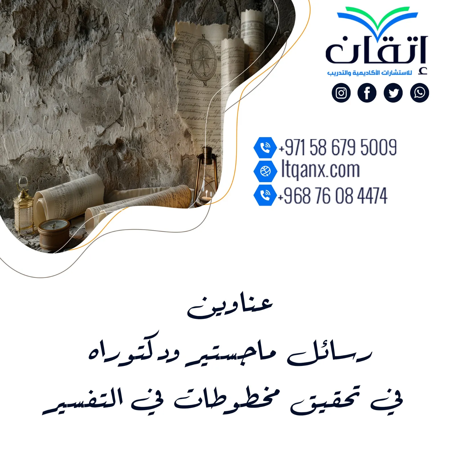 وفي النهاية بعد عرض أحدث عناوين رسائل ماجستير ودكتوراه في تحقيق مخطوطات في التفسير، نسأل الله العلي القدير أن يوفق جميع الباحثين في مساعيهم العلمية ويعينهم على تحقيق النجاح، وإذا أردت في أي وقت معرفة عناوين لرسالتك العلمية، كل ما عليك هو الاعتماد على شركة "إتقان" للاستشارات الأكاديمية والتدريبية؛ حيث يوجد لدينا نخبة من الخبراء المتخصصين القادرين على تقديم الدعم العلمي والاستشاري اللازم لكافة مراحل دراستك، يمكنك التواصل معنا عبر الواتساب؛ لنساعدك في اختيار موضوع علمي جديد يليق بطموحاتك الأكاديمية.