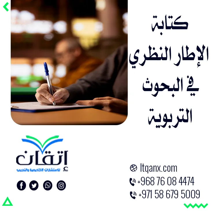 تُعتبر شركة إتقان للاستشارات الأكاديمية والتدريب الحل الأمثل لدعم الباحثين في كتابة الإطار النظري في البحوث التربوية بطريقة احترافية، تقدم الشركة خبرات متخصصة تساعد في تنظيم الأفكار وربط النظريات بالدراسات السابقة بشكل منهجي وواضح، كما توفر إتقان تحليلًا علميًا للدراسات السابقة، مع إبراز الفجوة البحثية التي يسعى البحث لسدها، إضافة إلى ذلك، تدعم الشركة الباحثين بالمراجع الحديثة والأدوات العلمية التي تعزز مصداقية البحث وجودته، يمكنك التواصل معنا عبر الواتساب لتعرف على المزيد من المعلومات.