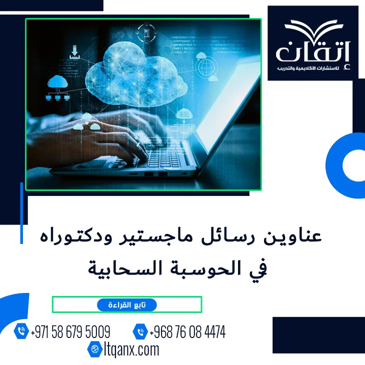 هل تسعى لتكون باحثاً رائداً في مجال تكنولوجيا المعلومات الذي يشكل مستقبل العالم؟ إن الحوسبة السحابية لم تعد مجرد تقنية، بل هي العصب المحرك للتحول الرقمي والأعمال والابتكار، وإدراكاً من شركة إتقان للاستشارات الأكاديمية والتدريب للأهمية القصوى لهذا الموضوع، ولعلمنا بمدى شغف الباحثين به قام فريقنا المتميز ذو الجودة والكفاءة الإبداعية بتصميم باقة بحثية لا مثيل لها، وهذه الباقة تقدم قائمة حصرية من أحدث وأهم عناوين رسائل ماجستير ودكتوراه في الحوسبة السحابية؛ لدعمك وتشجيعك على اختيار موضوع أصيل يضمن لك التميز والريادة الأكاديمية في هذا المجال المتجدد.