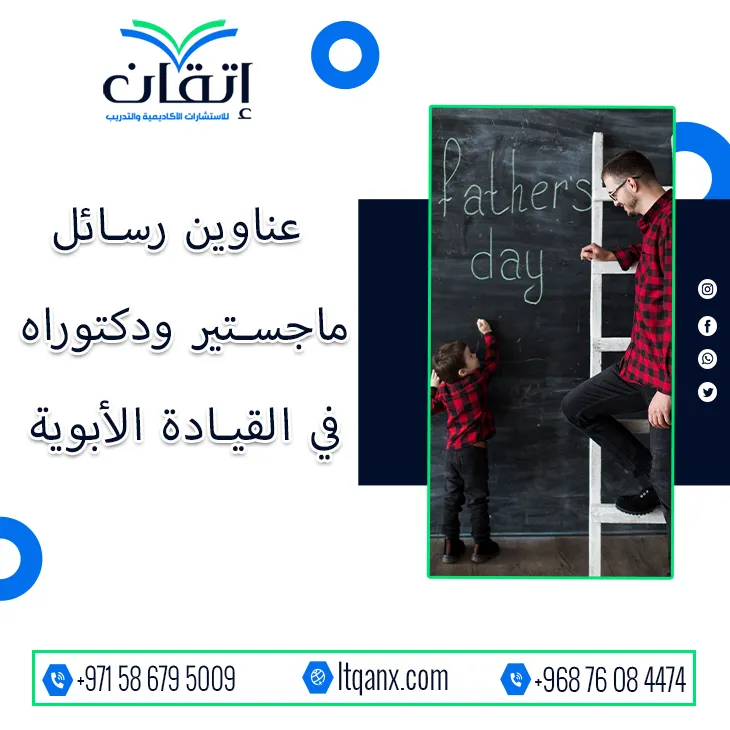 في عالم التربية والأسرة تحتل القيادة الأبوية مكانة أساسية في تشكيل سلوك الأبناء وصقل شخصياتهم، وإدراكًا لأهمية هذا الموضوع لدى الباحثين، تقدم شركة إتقان للاستشارات الأكاديمية والتدريب دعمًا مبتكرًا عبر فريق عمل متميز وخبرة واسعة، ومن هذا المنطلق قامت الشركة بتجميع قائمة من أحدث وأهم عناوين رسائل ماجستير ودكتوراه في القيادة الأبوية؛ لكي تكون مرجعًا غنيًا للباحثين في هذا المجال الحيوي، وتوفر هذه العناوين فرصة فريدة للاستفادة من أحدث الدراسات والتوجهات العلمية في القيادة الأبوية.