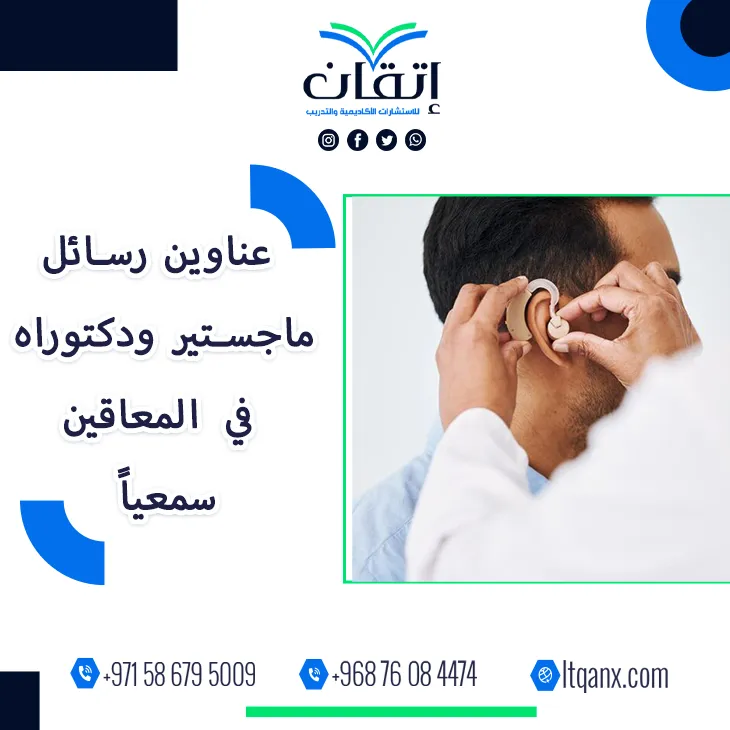 في عالم يفيض بالتكنولوجيا والتواصل تبقى الإعاقة السمعية واحدة من أكثر القضايا الإنسانية التي تستحق البحث والاهتمام؛ حيث إنها تمس جوهر التواصل الإنساني، وقدرة الفرد على الاندماج في المجتمع، ومن هذا المنطلق تأتي عناوين رسائل ماجستير ودكتوراه في المعاقين سمعيًا؛ لتكون مفتاحًا للباحثين نحو فهم أعمق للتحديات والفرص التي تواجه هذه الفئة الغالية، وتفخر شركة إتقان للاستشارات الأكاديمية والتدريب بتميزها في الجودة والكفاءة الإبداعية من خلال فريقها المتخصص؛ حيث تدرك تمامًا أهمية هذا المجال للباحثين، وبناء على هذا قامت بإعداد باقة حصرية من أحدث وأهم العناوين البحثية التي تلهم الأفكار وتدعم مسيرة الباحثين في رحلتهم الأكاديمية نحو التميز والتأثير.