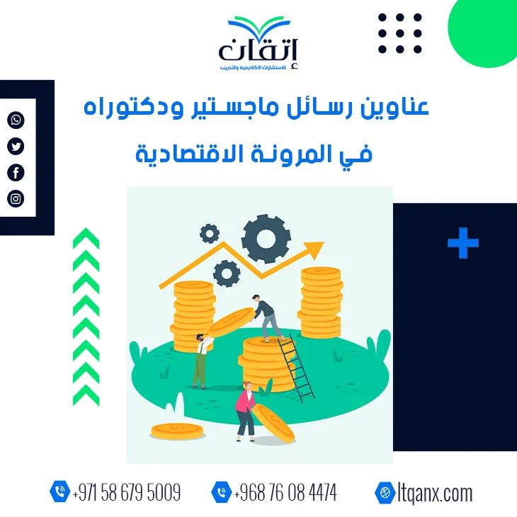 لم تعد المرونة الاقتصادية مفهومًا نظريًا مجردًا بل أصبحت معيارًا حاسمًا لقدرة الاقتصادات على الصمود والتكيف مع الأزمات والتحولات المتسارعة، وقد دفع هذا الاهتمام المتنامي الباحثين إلى البحث عن عناوين رسائل ماجستير ودكتوراه في المرونة الاقتصادية تعكس حداثة الطرح وعمق التحليل، ومن هذا المنطلق تميزت شركة إتقان للاستشارات الأكاديمية والتدريب بالجودة والكفاءة الإبداعية؛ وذلك بفضل امتلاكها فريق عمل متميزًا وذو خبرة بحثية واسعة، وإدراكًا لأهمية هذا المجال حرصت الشركة على تقديم باقة من أحدث وأهم العناوين البحثية دعمًا لمسيرة الباحثين العلمية.