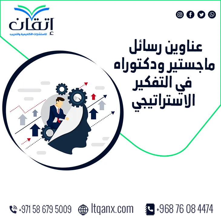 وفي ختام حديثنا تتضح قوة التفكير الاستراتيجي كوقودٍ للعقول الطموحة التي تبحث عن التميز والريادة؛ لذلك تواصل شركة إتقان للاستشارات الأكاديمية والتدريب تمكين الباحثين من خلال تقديم نخبة من عناوين رسائل ماجستير ودكتوراه في التفكير الاستراتيجي تجمع بين الحداثة والدقة العلمية، فـإن إتقان ليست مجرد جهة استشارية بل شريك النجاح الأكاديمي الذي يسير معك خطوة بخطوة نحو القمة، فقط تواصل معنا الآن عبر الواتساب بكل سهولة، ودع فريق إتقان يرافقك في رحلتك نحو التميز والإبداع البحثي.