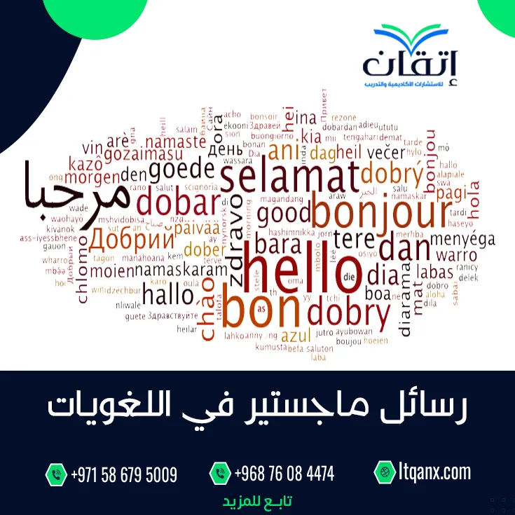 في الختام تعد اللغويات علمًا أساسيًا لفهم تطور اللغة واستخدامها في مختلف جوانب الحياة، ومن خلال رسائل ماجستير في اللغويات يتمكن الباحثون من استكشاف أعمق مفاهيم اللغة وتحليل تأثيراتها على التواصل والتفاعل البشري، وتساهم هذه الدراسات في تقديم حلول للمشاكل اللغوية المعقدة، وتطوير أساليب تدريس اللغة، ومن خلال شراكتها مع شركة إتقان التي تقدم خدمات ترجمة وبحث علمي على أعلى مستوى، ويمكن تعزيز هذه الأبحاث وتحقيق نتائج متميزة تساهم في إثراء المعرفة اللغوية العالمية، في النهاية يعكس هذا التضافر بين العلم والاحترافية الدور الحيوي الذي تلعبه اللغويات في حياتنا اليومية، كما أن شركة إتقان للاستشارات الأكاديمية تقدم لك المساعدة في كتابة خطة بحث، كل ما عليك هو التواصل معنا عبر الواتساب.