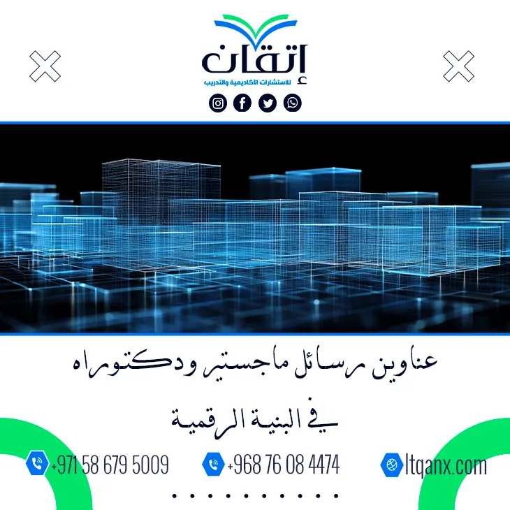 لا تُبنى التحولات الرقمية على التقنيات وحدها بل على منظومة مترابطة تُعرف اليوم بالبنية الرقمية التي تشكل العمود الفقري لعالم المعرفة والاقتصاد الحديث، ومن هذا المنطلق تبرز أهمية البحث العلمي في هذا المجال؛ لذلك تقدم شركة إتقان للاستشارات الأكاديمية والتدريب محتوى علميًا رصينًا يدعم الباحثين من خلال طرح عناوين رسائل ماجستير ودكتوراه في البنية الرقمية بصورة حديثة ومبتكرة، ويعود ذلك إلى ما تتميز به الشركة من جودة وكفاءة إبداعية بفضل فريق عمل خبير يمتلك فهمًا عميقًا لاتجاهات البحث المعاصرة، ومن إدراكها لأهمية هذا الموضوع لدى الباحثين حرصت على إعداد قائمة تضم أحدث وأهم العناوين البحثية التي يمكن أن تشكل نقطة انطلاق قوية للدراسات الأكاديمية المتخصصة.