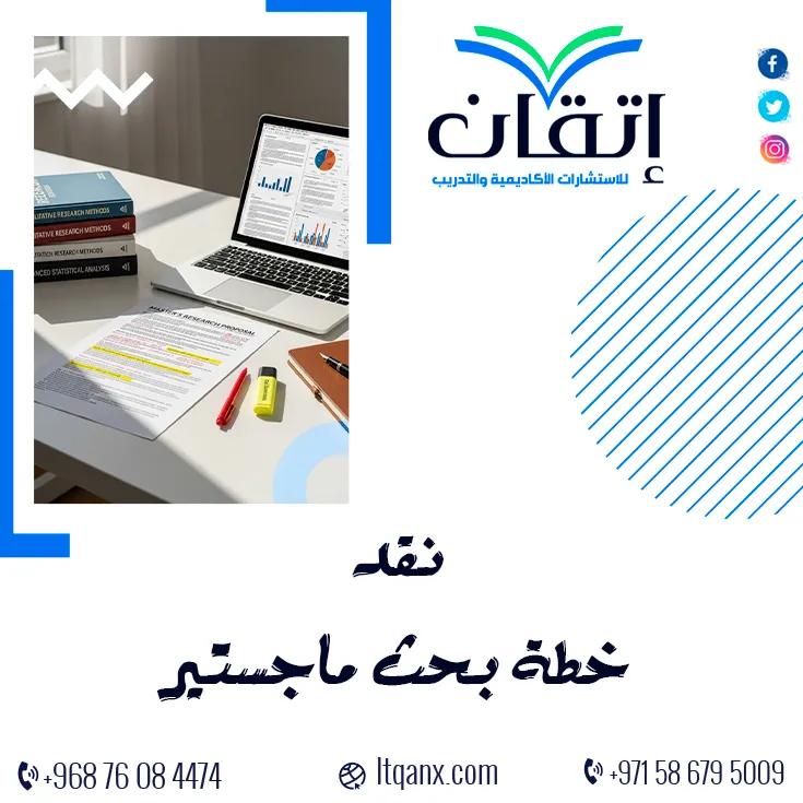 يتضح أن عملية نقد خطة بحث ماجستير تمثل خطوة أساسية لضمان جودة البحث العلمي وقوته المنهجية قبل البدء في تنفيذه، فالنقد العلمي يساعد الباحث على اكتشاف نقاط القوة والضعف في خطته البحثية، ومن هذا المنطلق، تمثل شركة اتقان للاستثمارات الأكاديمية والتدريب دور مهم في دعم الباحثين وطلاب الدراسات العليا، وبفضل خدماتها في السعودية والإمارات والكويت وعمان وقطر وجميع الدول العربية يصبح الأبحاث العلمية أكثر سهولة، ودقة، وجودة، نقدم لك إعداد أبحاث الترقية العلمية فلا تترد في التواصل معنا على الواتساب الآن.