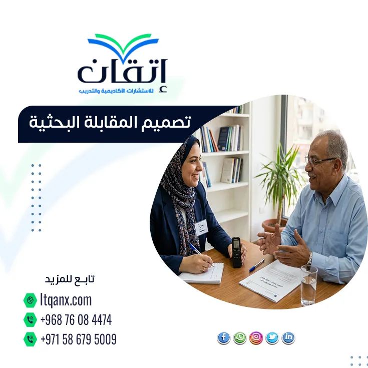 في الختام، لكي يحصل الباحث على النتيجة المرجوة من البحث لابد ان يتسم تصميم المقابلة البحثية بالمرونة والذكاء في إدارتها مع المشاركين وألا يغفل عن الهدف الرئيسي الذي صممت من أجلة المقابلة، وأن يسود جو من الطمأنينة والود اثناء المقابلة فيستطيع المبحوث الإدلاء برأيه بحرية تامة، يمكنك من خلال إتقان الحصول على خدمة التصميم والتحليل وتفسير النتائج وعرضها في رسوم بيانية وجداول إحصائية احترافية، فنحن ندعم الباحثين في السعودية، الكويت، قطر، الإمارات، وجميع الدول العربية، نقدم لك مكتب أبحاث للخدمات الجامعية، ويمكنك التواصل معنا عبر الواتساب وابدأ رحلتك البحثية بثقة وتميز.