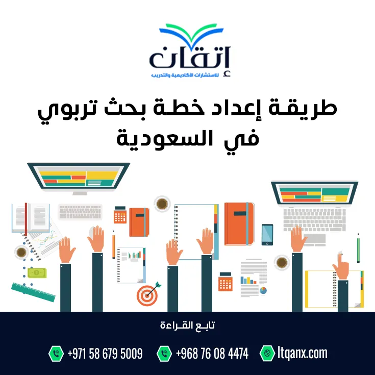 في ختام مقالنا حول طريقة إعداد خطة بحث تربوي في السعودية، نجد أن فهم هذه الطريقة يمثل خطوة أساسية لكل باحث يسعى لإعداد دراسة علمية متكاملة وفق المعايير الأكاديمية المعتمدة، وفي هذا السياق، اذا كنت تبحث عن دعم أكاديمي احترافي يضمن لك الجودة والدقة في إعداد أبحاثك ورسائلك العلمية، فإن شركة إتقان للاستشارات الأكاديمية والتدريب تُعد خيارك الأمثل كما تقدم إتقان دورات تدريبية وخدمات بحثية في العديد من الدول العربية، مثل: المملكة العربية السعودية والإمارات وغيرها، نقدم لك مساعدة طلبة الماجستير والدكتوراة والباحثين، ويمكن التواصل مع الشركة عبر واتساب للحصول على الدعم المناسب.