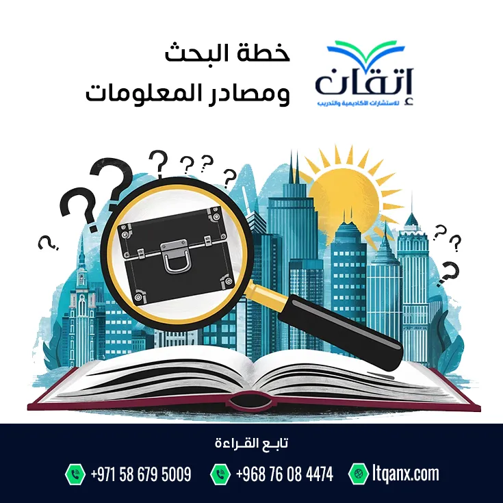 في النهاية، يمثل النجاح في البحث العلمي دمجًا متقنًا بين خطة البحث ومصادر المعلومات الموثوقة والمنظمة بعناية؛ ولذلك تقدم إتقان للاستشارات الأكاديمية والتدريب الدعم الكامل في خدمات إعداد البحث العلمي، من اختيار الموضوع إلى جمع المصادر وتحليلها وتوثيقها بطريقة احترافية، نحن نخدم الباحثين في السعودية، الإمارات، قطر، الكويت، عمان، وجميع الدول العربية لضمان أفضل جودة للبحث، لا تتردد في التواصل معنا على الواتساب للحصول على استشارة سريعة ومباشرة، دع إتقان يكون شريكك في الوصول إلى بحث علمي متميز وموثوق يعكس مجهودك وأفكارك بدقة.