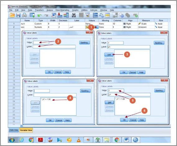وعند الحديث عن المتغيرات فإن المقصود بها المتغيرات التي توضع على محور السين (X) وكذلك البيانات التي تعرض على محور الصاد (Y)، ويتم إدخال البيانات وتحليلها باستخدام برنامج SPSS من خلال مجموعة من الخطوات المنظم، وهي كالتالي: